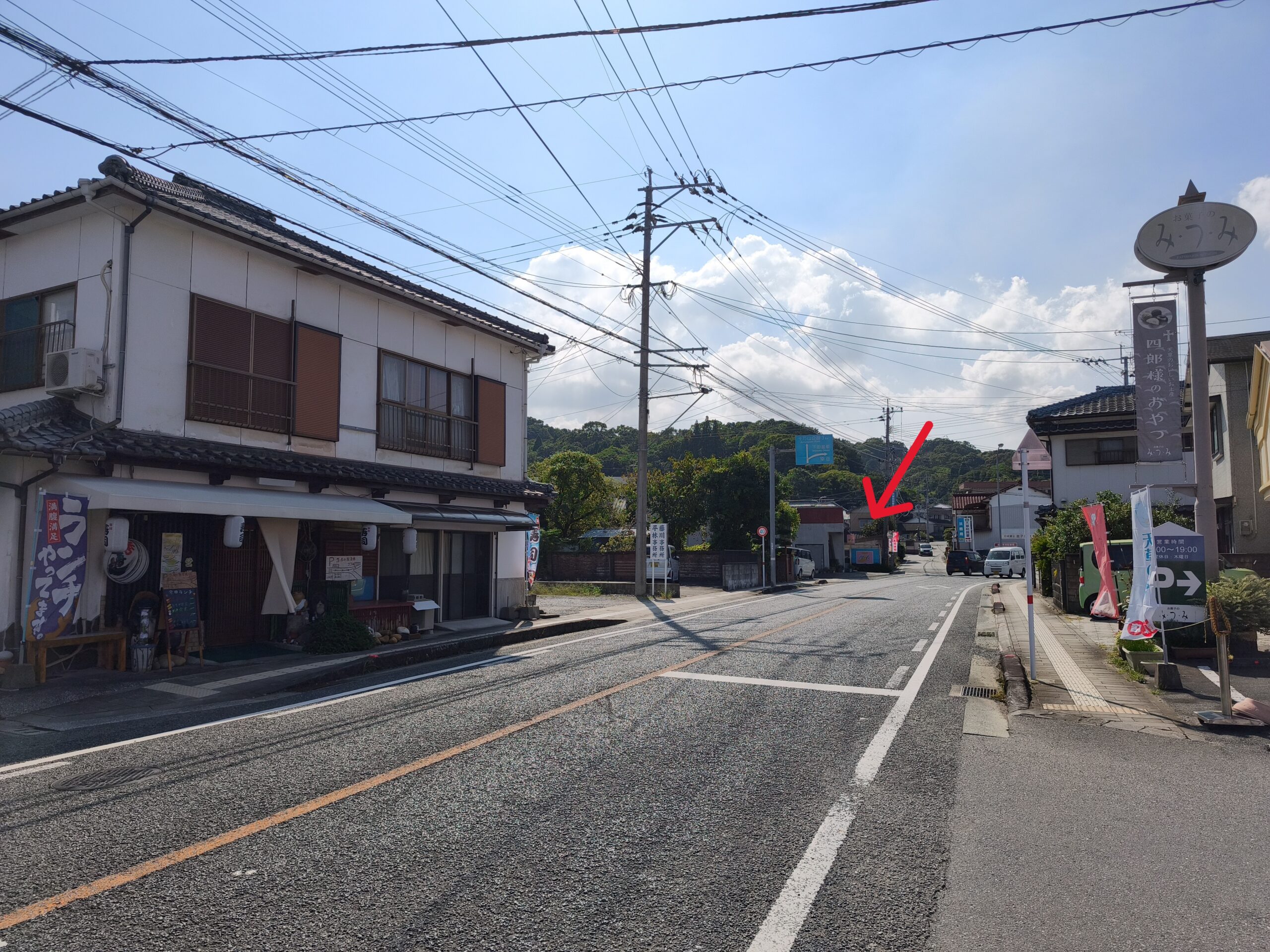 市役所方面からお越しの場合、秀寿しを通りすぎて法務局や裁判所がある細い道に入ってすぐのところにあります。