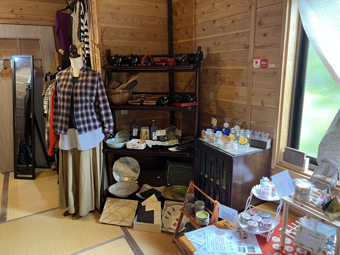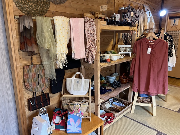 店内ではたくさんの雑貨や手作り小物、器や古着も販売されています。