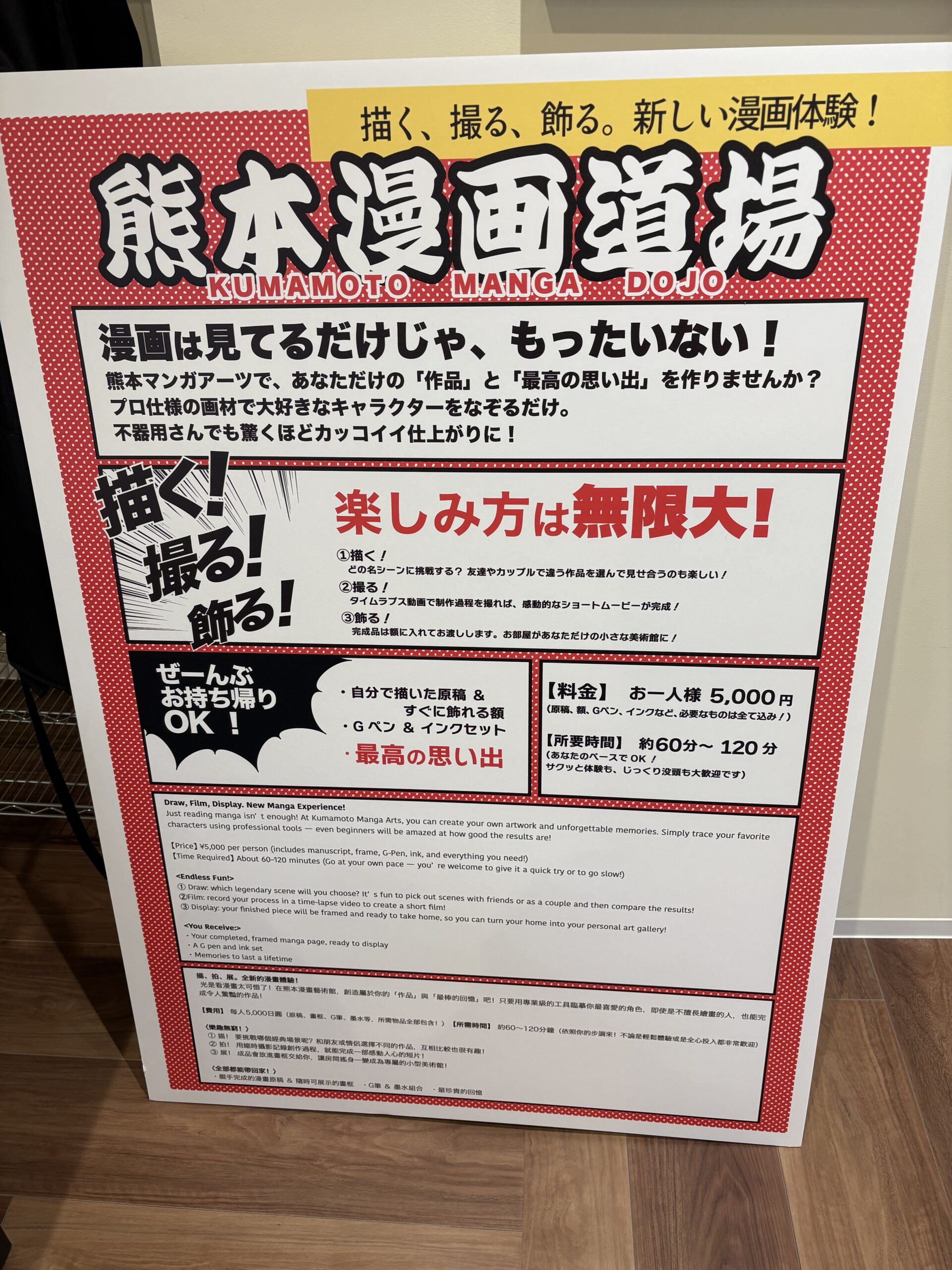 予約などは必要なく、直接熊本マンガアーツへ行って体験が可能です。