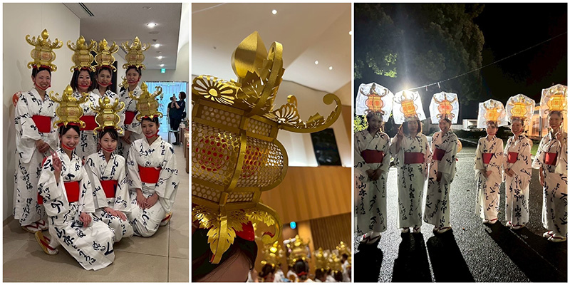 なかでも象徴的なのが、千人の女性が金灯籠を頭に掲げ、舞い踊る「千人灯籠踊り」。千人が調和して踊る美しい光景は、訪れる人々を魅了し続けています。