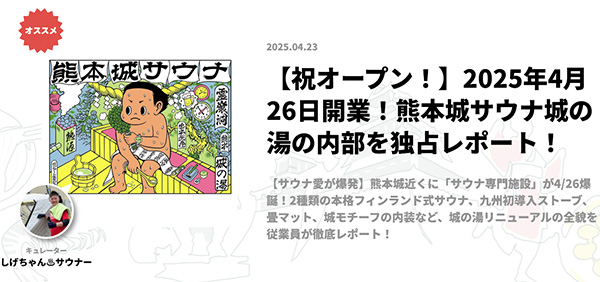 【第5位】祝オープン!熊本城サウナ城の湯 独占レポート(しげちゃん♨サウナー)