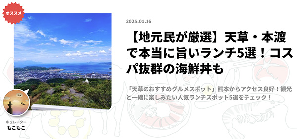 週末の天草ドライブ前には必ずチェックしておきたい、「保存版」のグルメガイドです。