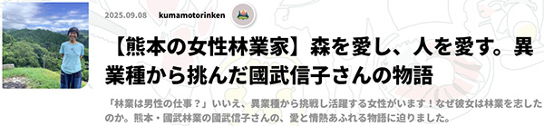 【熊本の女性林業家】森を愛し、人を愛す。異業種から挑んだ國武信子さんの物語