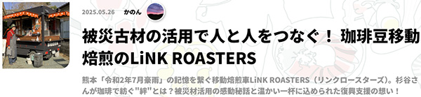 『被災古材の活用で人と人をつなぐ! 珈琲豆移動焙煎の LiNK ROASTERS』