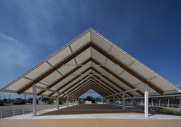 こちらは湯前駅にある複合施設で、広々とした屋根付きの多目的広場に、「湯前まんが図書館」や「ユノカフェ」が併設されています。