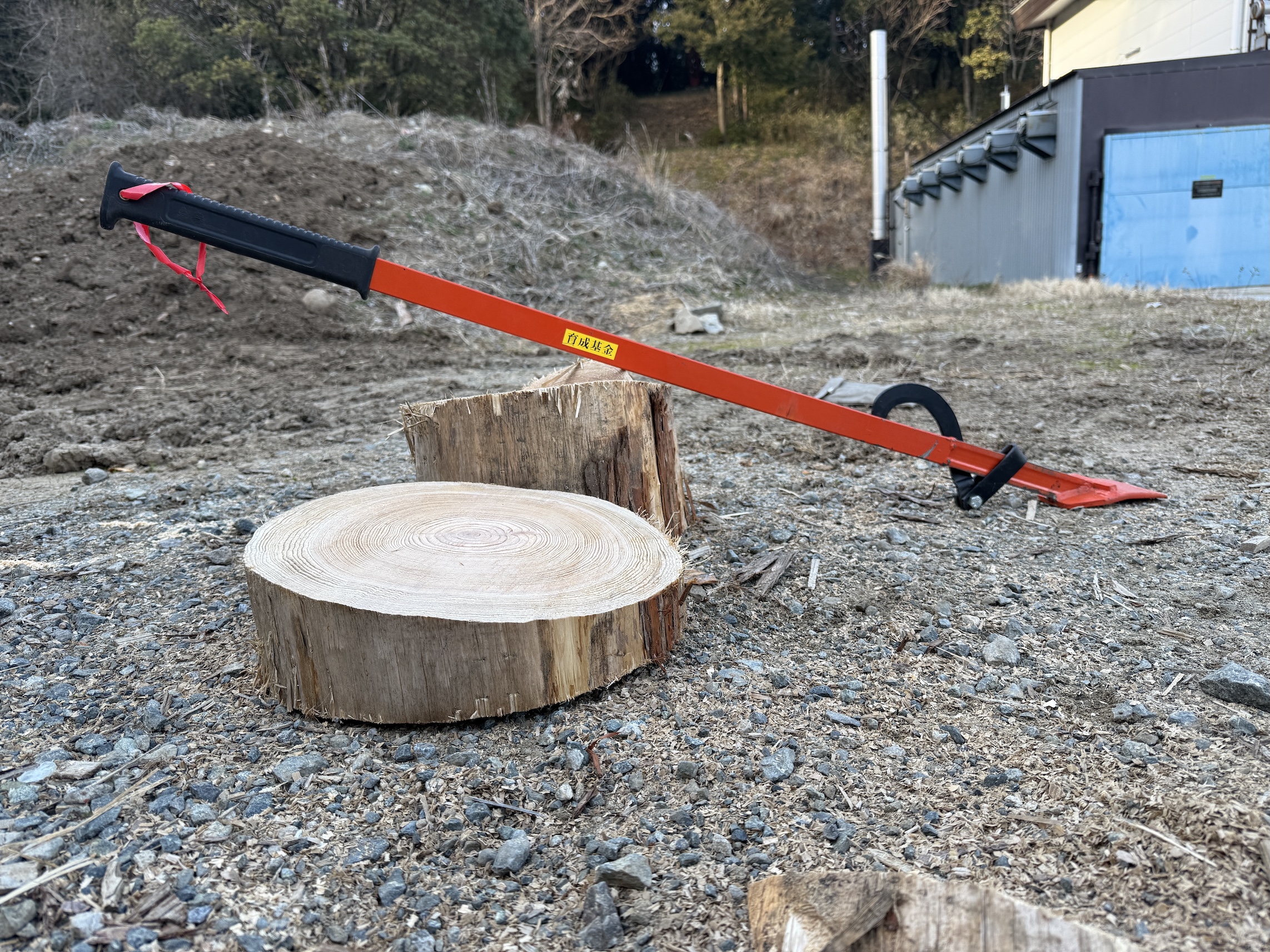 上の画像は芯が抜けてしまった状態。ただ丸太にするだけでも、木自体に損傷がないように伐らないと売り物になりません
