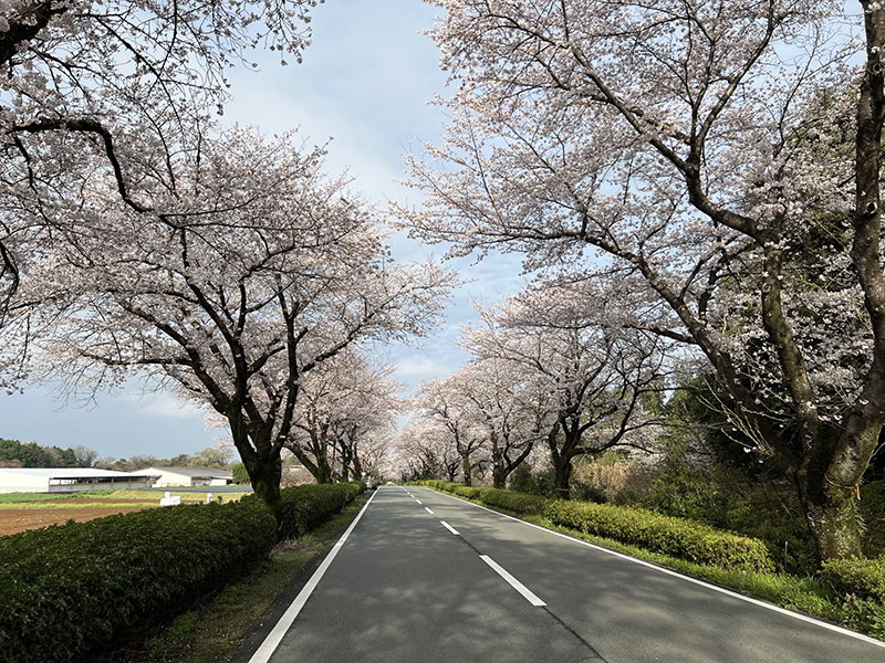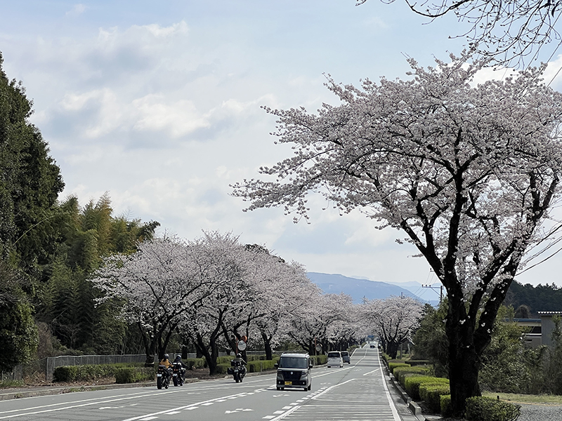熊本県大津町に本拠を置く本田技研工業の工場は、国内唯一の二輪車の生産拠点です。バイク乗りにとっての「聖地」とも言えるこの場所の南側、阿蘇に向かって東西に走る直線道路には、見事な桜並木が広がっています。