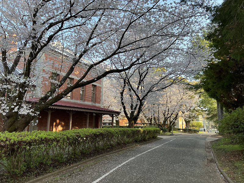 威風堂々としたレンガ造りの「赤門(正門)」を彩る桜は、まさに圧巻。ドラマのワンシーンに入り込んだような、どこか懐かしくもアカデミックな空気が流れています。