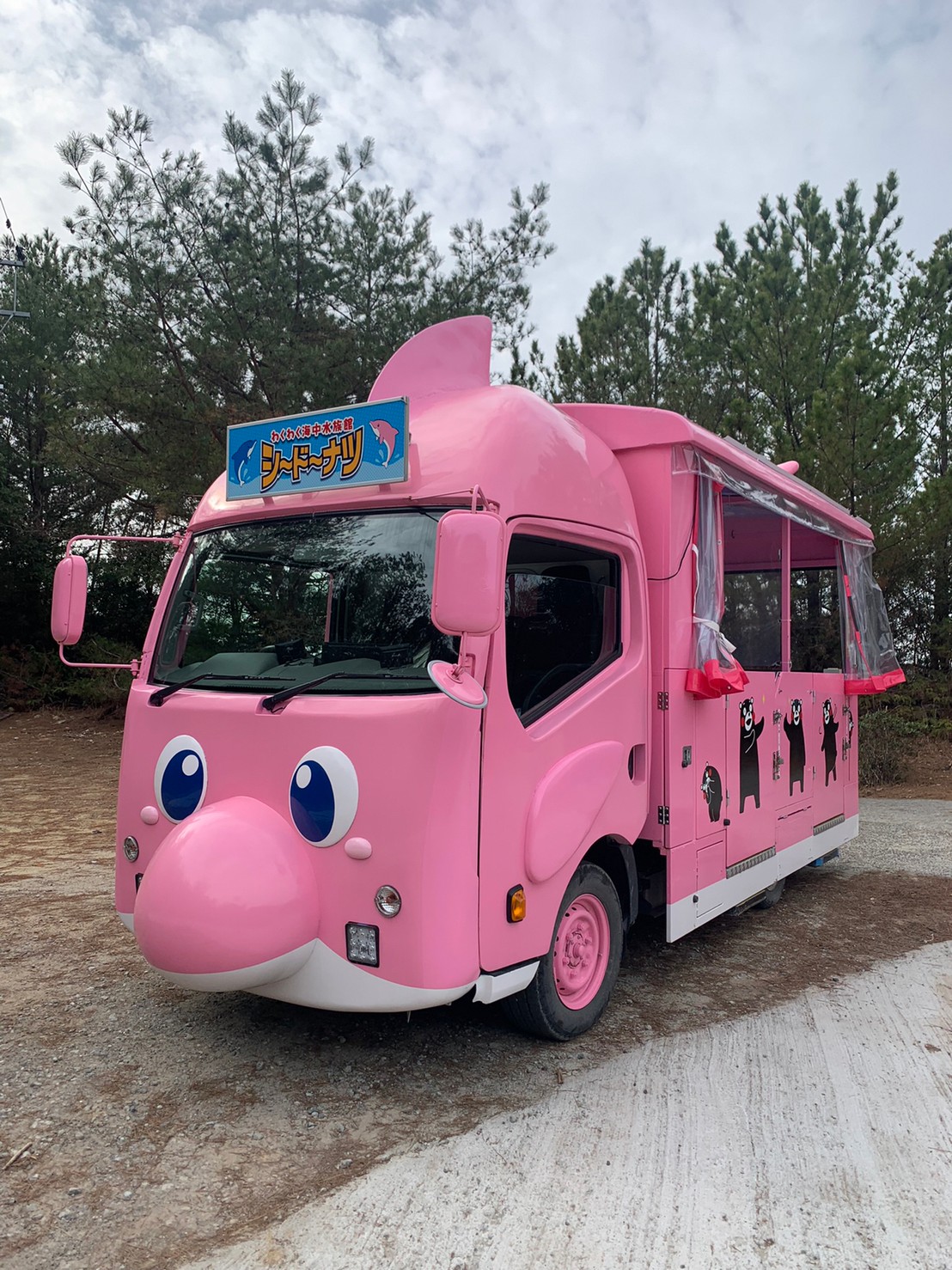 駐車場から水族館までは少し距離があるため、小さなお子さま連れの方にはピンクのかわいい送迎バス「イルちゃん号(片道100円)」を利用してみてください。